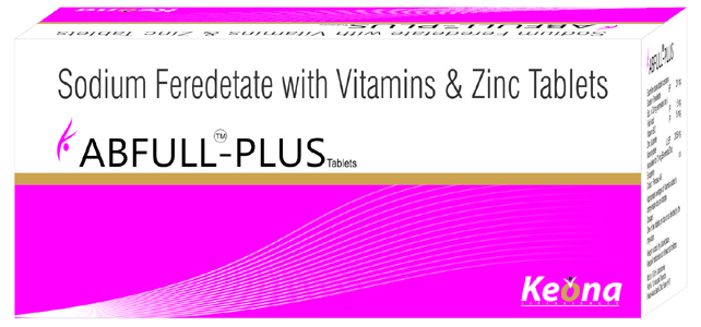4 | ABFULL-PLUS®TAB | Sodium Feredetate 231mg, Folic Acid 1.5 mg, Vitamin B12 15 mcg & Zinc Sulphate 20.59 mg |
